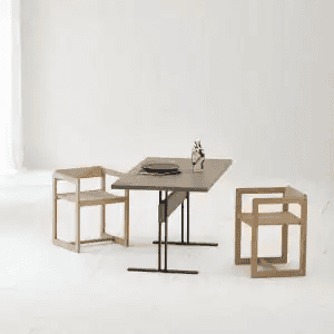 - كرسي مودرن بجانب طاولة كلاسيكية.