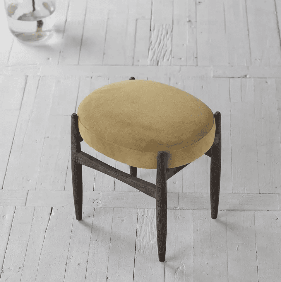 - التنجيد: قماش مخملي ناعم باللون الأصفر الخردلي لإحساس فاخر بالراحة