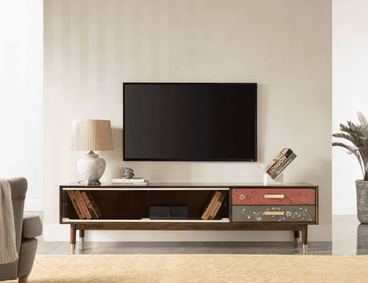 - وحدة تخزين أنيقة: تحتوي العديد من طاولات التلفزيون الفخمة على أدراج مغلقة، وأرفف مفتوحة، وخزائن جانبية يمكن استغلالها لحفظ الأجهزة الإلكترونية، وأقراص الألعاب، والريموتات، وحتى الكتب والمجلات. وبهذا تساعد على الحفاظ على نظام الغرفة ومظهرها المرتب دون الحاجة إلى قطع أثاث إضافية.