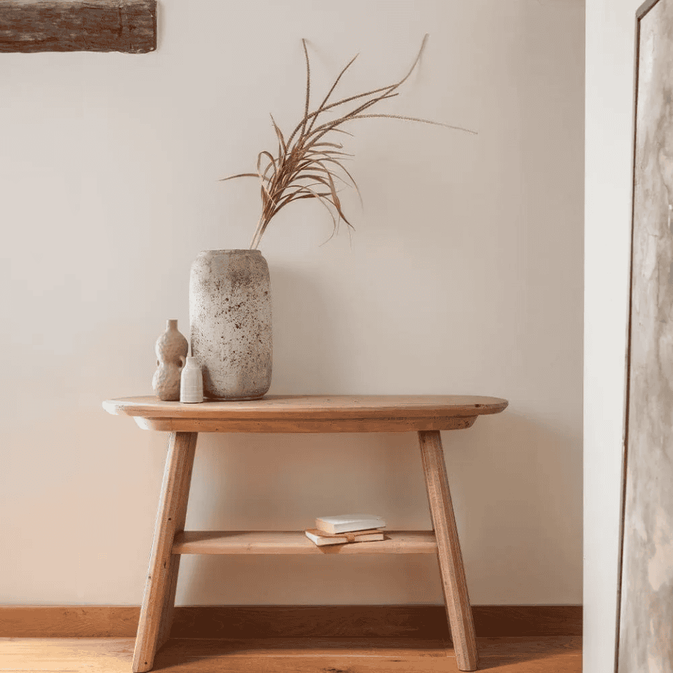 - كونسول أنيق بطابع طبيعي مع رف وسط