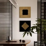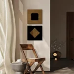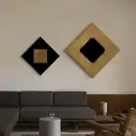 أضف طابعًا فنيًا فاخرًا إلى جدران منزلك مع إطار برواز مودرن بتصميم هندسي أنيق يجمع بين البساطة والتباين الجريء في الألوان. يتكوّن هذا العمل الفني من قطعتين منفصلتين بالألوان الذهبية والأسود المطفي، ليشكل ثنائيًا بصريًا قويًا يلفت الانتباه في أي مساحة معاصرة.