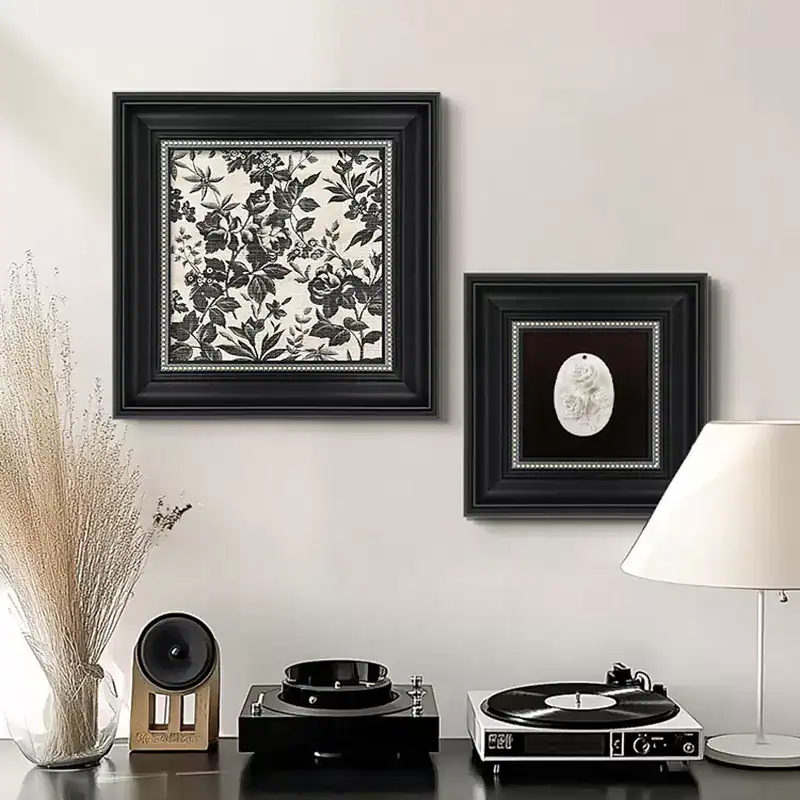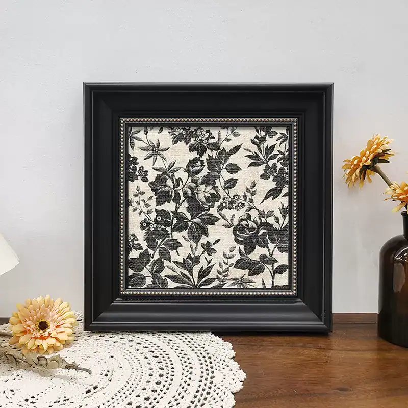 أضف لمسة من الفخامة العصرية إلى ديكور منزلك مع برواز أسود خشبي بتصميم كلاسيكي بتفاصيل معدنية جذابة. هذا إطار الجدران المميز يأتي بلون أسود مطفي مزخرف بحواف لؤلؤية ناعمة تمنح الجدار عمقًا بصريًا وشخصية فنية راقية. مثالي لمحبي الذوق الهادئ والبسيط مع لمسة فنية أنيقة.