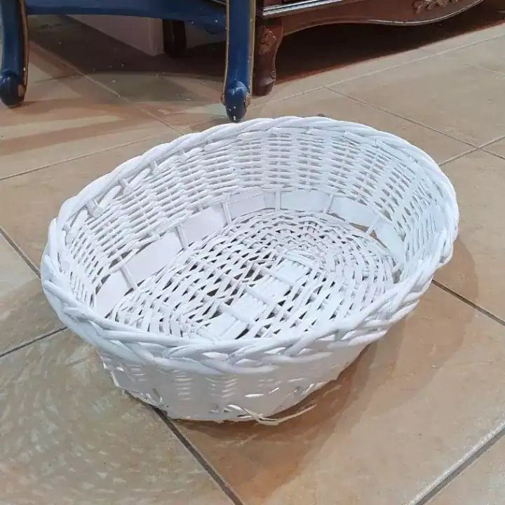 لون أبيض نقي: السلة مطلية باللون الأبيض الكامل، مما يعكس النقاء والضوء ويجعل الوردة الزهرية تبرز بوضوح كـ “نقطة تركيز” (Focal Point).