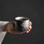 لمسة يدوية (Rustic Feel): الحواف غير المنتظمة قليلاً والملمس المتباين بين النعومة والخشونة يعكس روح العمل اليدوي الحرفي، مما يجعل كل كوب يبدو وكأنه قطعة وحيدة من نوعها.