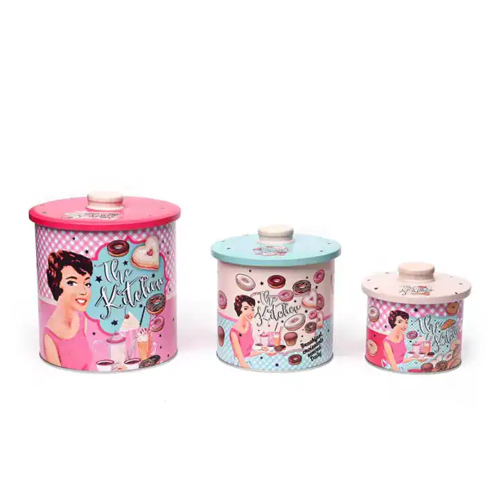 استمتعي بمزيج من الأناقة والعملية مع طقم علب حلويات معدنية مزينة برسومات مستوحاة من الطراز الأمريكي الكلاسيكي. يتميز هذا الطقم بثلاثة أحجام متفاوتة، مثالية لحفظ الحلويات، السكر، الشاي أو حتى التوابل والمكونات الجافة.