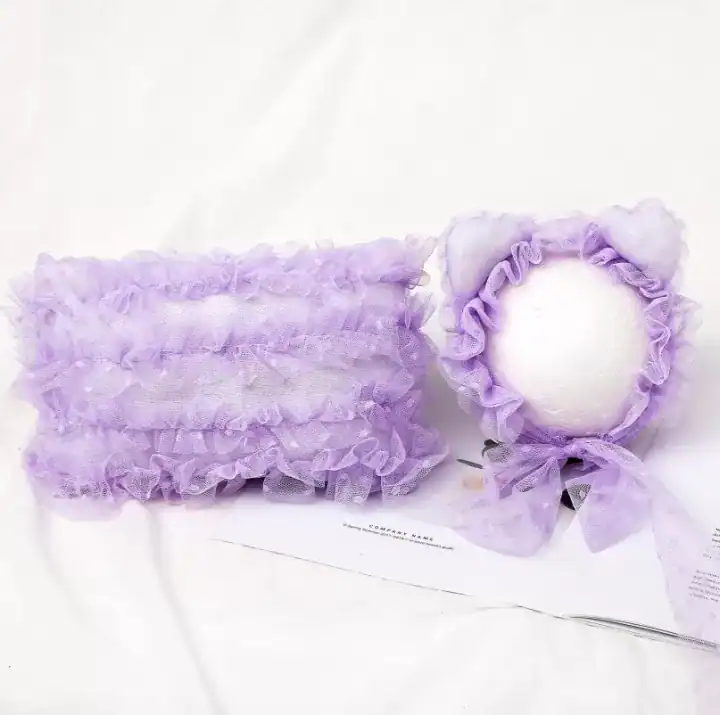 / طقم مخدة مع قبعة قماشية من الدانتيل