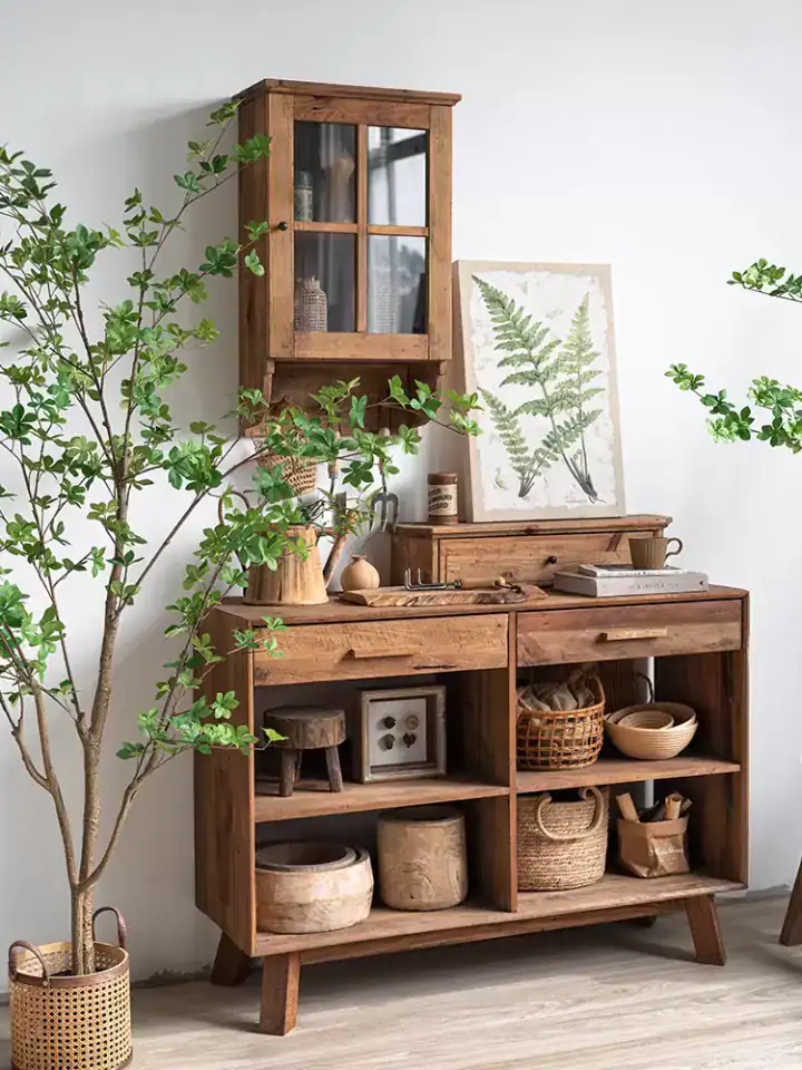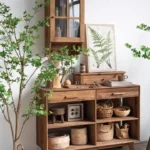 أرفف مفتوحة: تمنحك مساحة لتنسيق سلال الخوص، الكتب، أو عرض التحف والنباتات لتعزيز الطابع الريفي.
