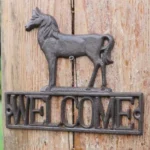 استقبل ضيوفك بأسلوب يعكس الذوق الرفيع مع لوحة حصان مصنوعة من الحديد المصبوب بتصميم بارز يتوسطه حصان واقف فوق عبارة WELCOME. تتميّز هذه اللوحة بلمسة ريفية تقليدية تجعلها مثالية كـ ديكور باب أو ديكور مدخل خارجي أو داخلي، وتضيف طابعًا ترحيبيًا دافئًا يعكس الأصالة والبساطة.