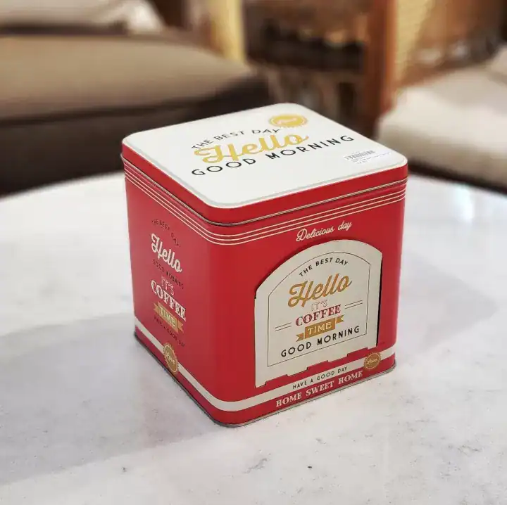 تتميز هذه العلبة المعدنية بطابع صباحي مميز يحمل عبارة “Hello – Good Morning”، مما يجعلها قطعة ديكور أنيقة بالإضافة إلى وظيفتها العملية.