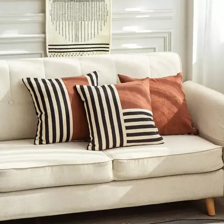 امنح أثاث منزلك لمسة من التميز مع هذه مخدة كنب المخططة بتصميم مودرن راقٍ. قطعة واحدة كفيلة بتغيير مظهر الجلسة بالكامل.