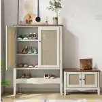 • دولاب أحذية خشبي  مصنوع من الرتان الطبيعي كما أنه  يتميز بتصميم أنيق يجمع بين الخشب والرتان لمظهر عصري ودافئ.
