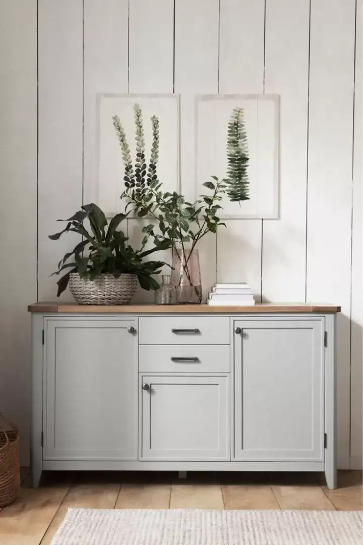 دولاب خشبي صنوبر طبيعي ذو تصميم عملي مزود بعدة أدراج وأبواب مغلقة لتوفير أقصى درجات التنظيم والتخزين.