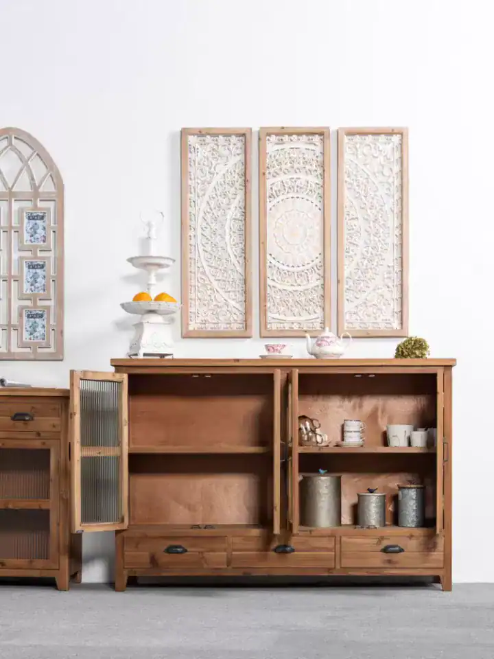 يمكن وضعه في مداخل المنازل لإضفاء لمسة استقبال أنيقة، أو في الصالات لتخزين أدوات الضيافة، كما يناسب الممرات وغرف المعيشة كخزانة عرض عملية.