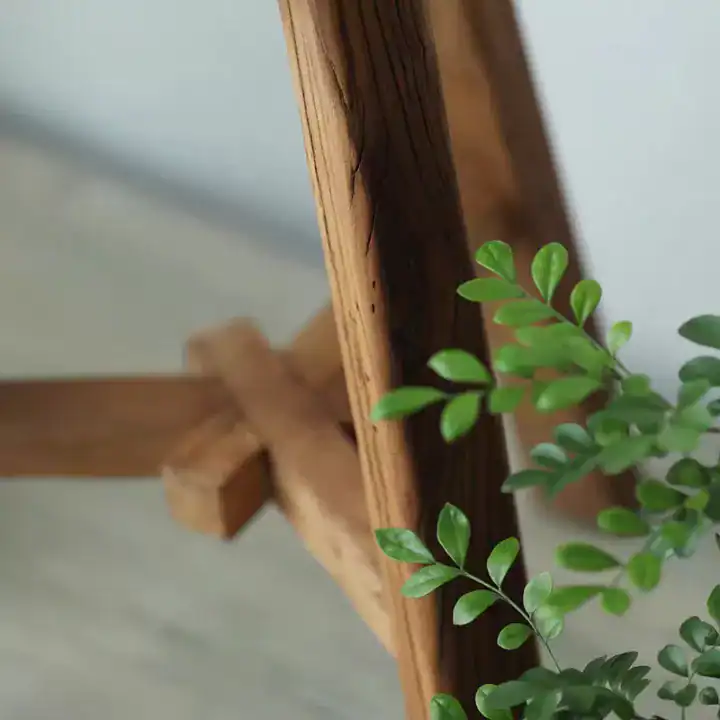 يعكس هذا الكرسي الخشبي البسيط الطابع الريفي بأجمل صوره. أرجل ثلاثية بزوايا متوازنة تمنحه الثبات والشكل المتناغم، ما يجعله مثاليًا للاستخدام كـ طاولة خدمة خشبية في الزوايا، أو كمقعد إضافي عملي داخل الغرف الصغيرة، أو حتى كقاعدة لعرض نباتات الزينة في الشرفات والصالون.