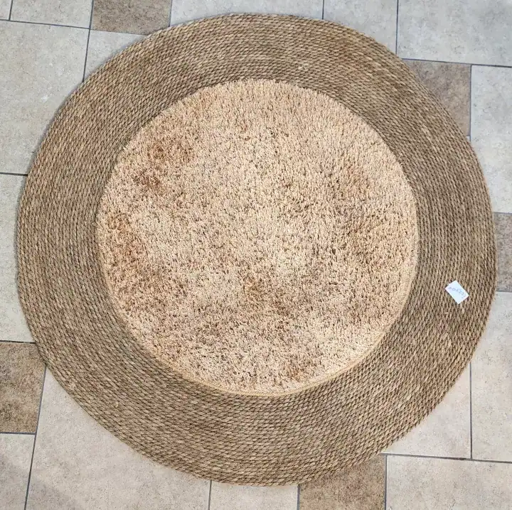أضف لمسة دافئة وطبيعية إلى منزلك مع سجاد رتان بتصميم دائري يجمع بين البساطة والأناقة.