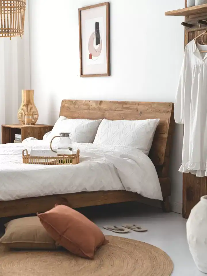 يتميز سرير خشب ريفي بتصميمه الأنيق والبسيط الذي يضيف لمسة من الأناقة الريفية إلى أي غرفة نوم.