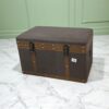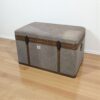 صندوق بوف تخزين مغلف بالقماش والجلد بتصميم أنيق ومتعدد الاستخدام – مثالي لتخزين المصليات أو كقطعة ديكور مميزة بجانب الكونسول. عملي ومريح بلمسة فاخرة.