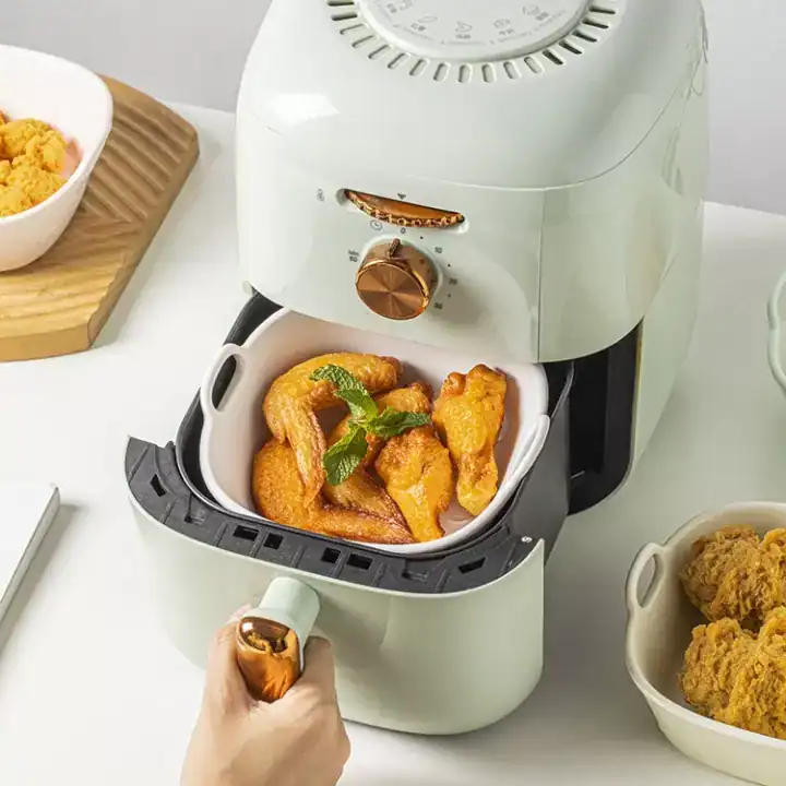 مصممة للقلايات الهوائية (Air Fryer Safe): تأتي بمقاس وتصميم مربع/دائري بحواف انسيابية يتناسب تماماً مع سلة القلاية الهوائية، مما يضمن استغلال المساحة وتوزيع الحرارة بشكل مثالي.