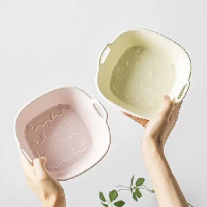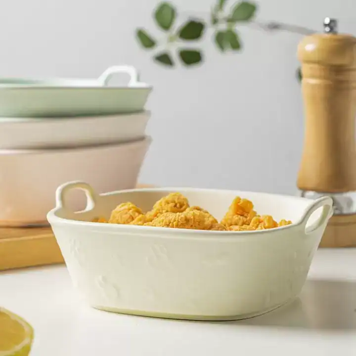 تعليمات العناية: للحفاظ على صينية سيراميك للقلاية الهوائية، يمكن غسلها بسهولة في غسالة الصحون أو يدوياً بالماء والصابون. السطح السيراميكي الأملس يمنع التصاق الطعام، مما يجعل التنظيف سريعاً وبسيطاً. تأكدي دائماً من استخدام قفازات عند إخراجها وهي ساخنة.
