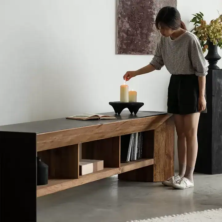 طاولة تلفزيون خشب طبيعي تعد قطعة مثالية لإضافة لمسة من الدفء والجمال على غرفة المعيشة الخاصة بك.