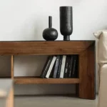 طاولة تلفزيون خشب طبيعي مصنوعة من أجود أنواع الخشب لتضمن المتانة والاستدامة لسنوات طويلة.