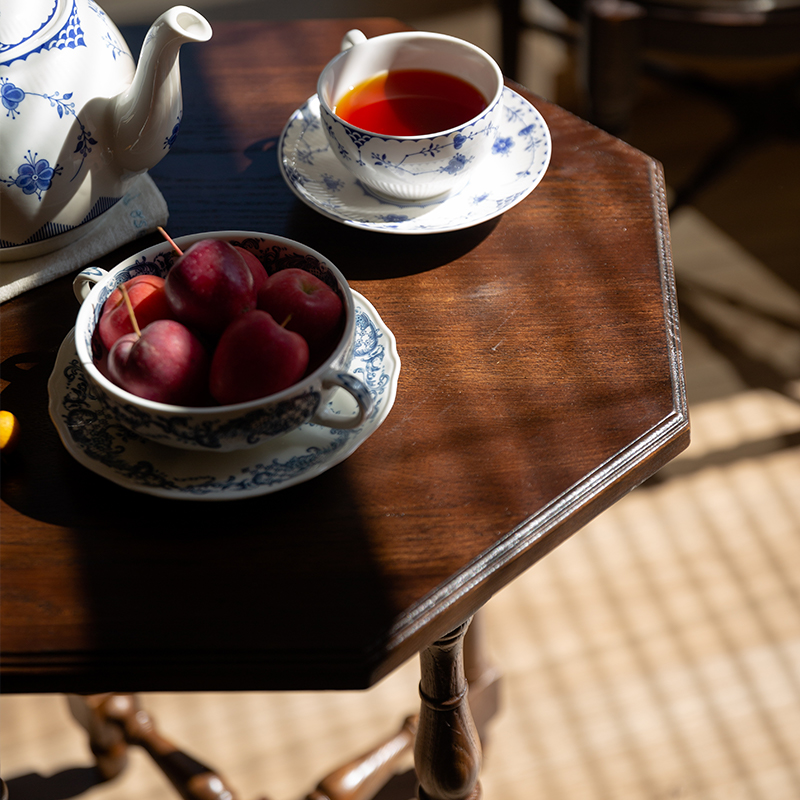 طاولة خدمة من الخشب الطبيعي بتصميم ثماني الأضلاع وأربع أرجل ثابتة، مثالية للمجالس وغرف المعيشة بحجم عملي وشكل أنيق.
