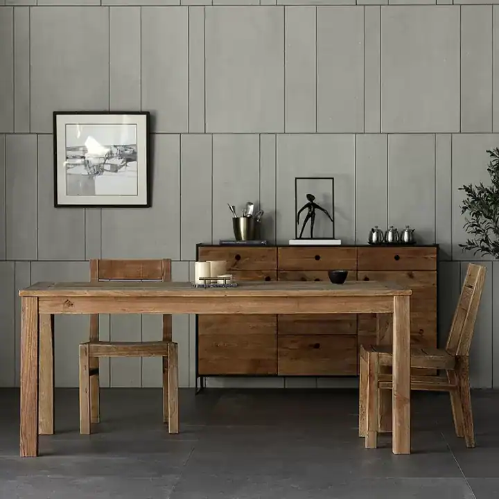 طاولة طعام مستطيلة مصنوعة من خشب الصنوبر الطبيعي عالي الجودة لمتانة تدوم طويلاً.