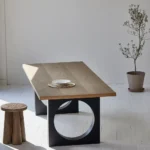 متانة تدوم: الدمج بين سطح الخشب الطبيعي السميك والقاعدة المعدنية/الخشبية الصلبة (حسب الموديل) يضمن لك قطعة أثاث تعيش طويلاً وتتحمل الاستخدام اليومي المكثف.