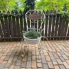 كرسي ديكور معدني لحمل الأصايص بتصميم فني أنيق يناسب الحدائق والمداخل والشرفات. مصنوع من حديد عالي الجودة يوفر الثبات والمتانة ويضيف لمسة جمالية للمساحة.