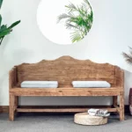 يتميز كرسي ريفي بمسند ظهر مرتفع بتصميم مقوس يضفي عليه طابعًا تقليديًا أنيقًا، مع مقعد عريض مريح مثالي للجلسات الطويلة. الوسائد الناعمة تضيف مستوى إضافيًا من الراحة وتتناسب مع الطابع الخشبي للمقعد. مثالي للديكور الريفي البوهيمي والمداخل الواسعة.