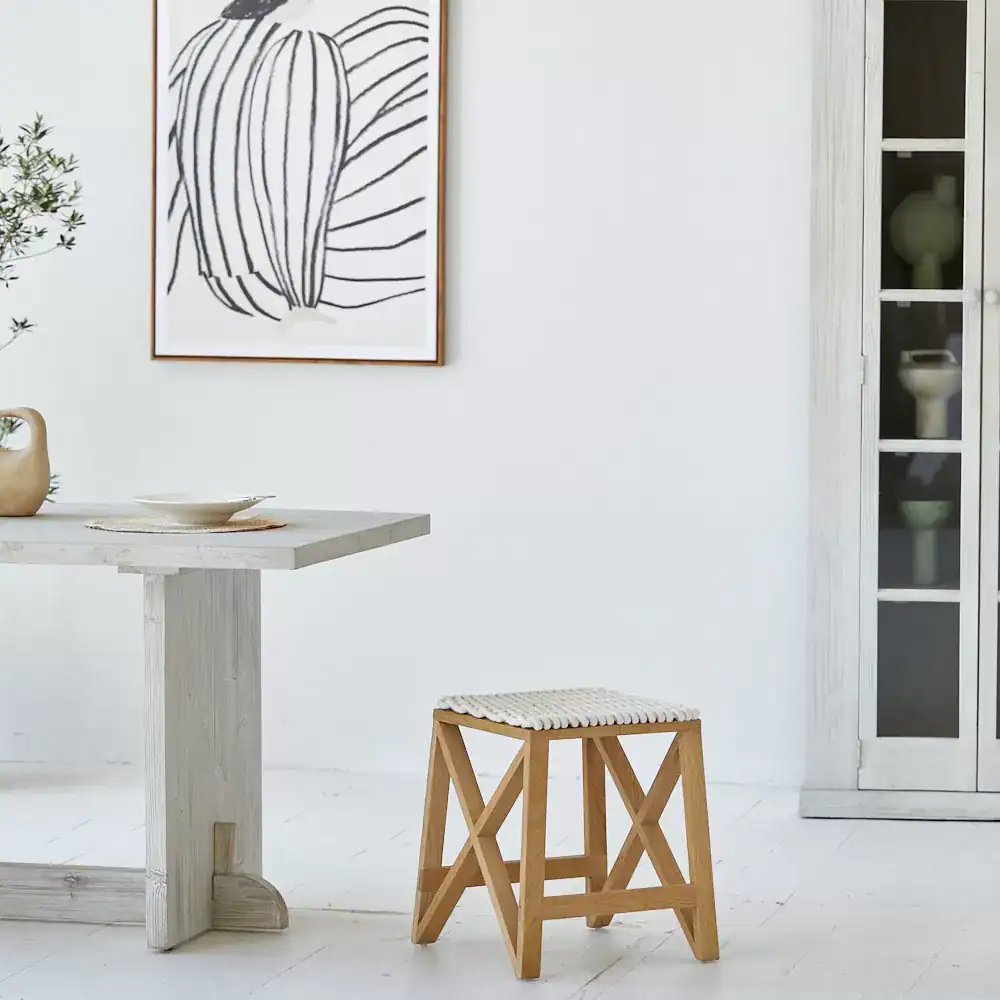 اطلب الآن كرسي تسريحة مربع بتصميم هندسي وخامة طبيعية تضيف راحة وتميزًا لمحيطك، فقط من La Tulipe.