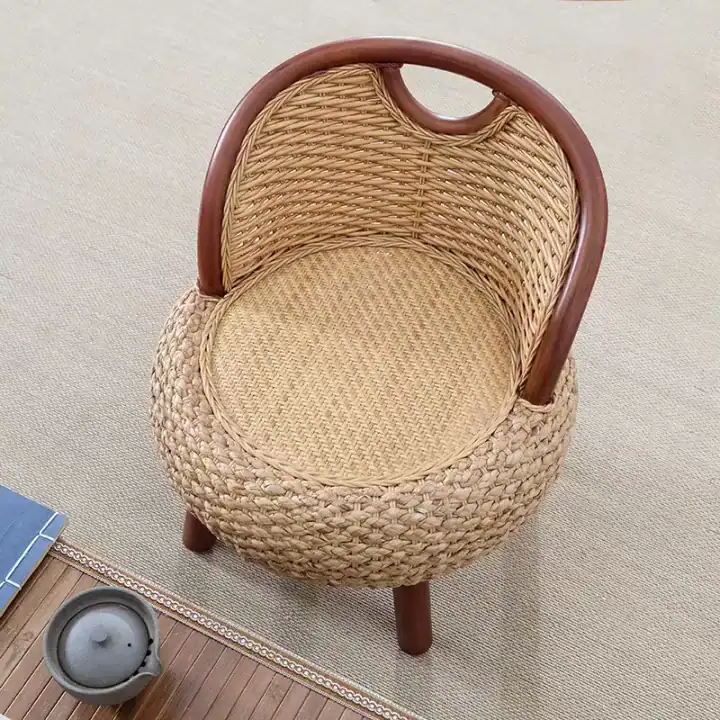 يمتاز هذا الكرسي المفرد بتصميمه غير التقليدي، حيث يتكوّن من قاعدة خيزران متينة تمنحه شكلًا دائريًا جذابًا مع مسند ظهر مدمج ومريح. يعتبر خيارًا ممتازًا للباحثين عن كرسي خيزران بلمسة خشبية بسيطة، كما أنه مثالي للمساحات الصغيرة مثل غرف الشاي، الزوايا الجانبية أو غرف الأطفال.