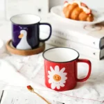 تعليمات العناية: للحفاظ على نضارة اللون الأحمر ورسمة الزهرة في كوب قهوة سيراميك، يُنصح بغسله بإسفنجة ناعمة. الكوب متين ومصمم للاستخدام اليومي، ليظل مصدراً للبهجة في مطبخك لسنوات.