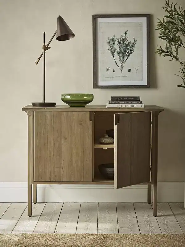 نصيحة للديكور: استغل سطح كونسول مدخل خشبي الواسع لوضع صينية ضيافة أنيقة، أو مصباح طاولة كبير، مع لوحة فنية معلقة أعلاه، لتحصل على ركن متكامل الجمال والوظيفة.