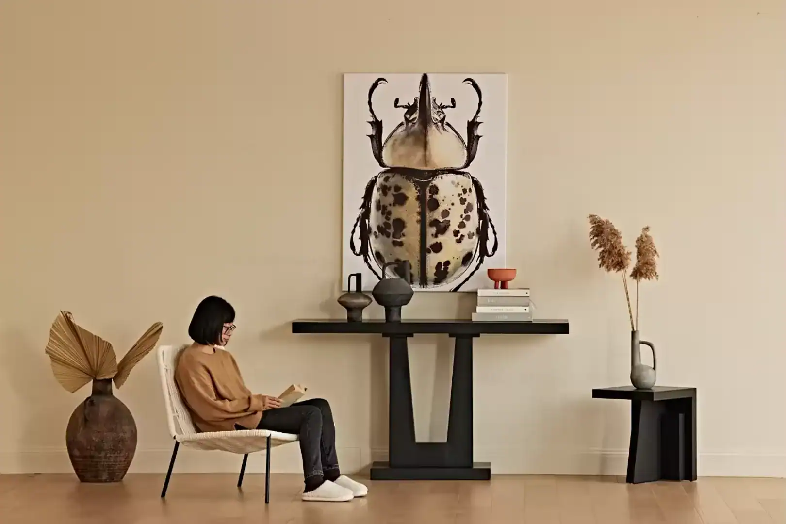 سطح واسع للتنسيق: بمقاس 150 سم، يتيح لك السطح العلوي العريض عرض الديكورات، الكتب الفنية، أو الإكسسوارات الذهبية التي تتلألأ فوق الخلفية السوداء بأسلوب راقٍ.