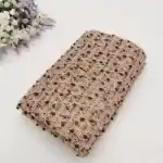 نقاط صوفية بارزة (Wool Dots): النسيج مزين بنقاط صوفية صغيرة نافرة بنفس درجة اللون، مما يضيف ملمسًا (Texture) غنياً يجعل الصورة تبدو وكأنها لوحة فنية مرسومة، خاصة عند الإضاءة الجانبية.