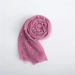 لون وردي موف (Dusty Pink/Mauve): تأتي اللفة بلون وردي غبار الورد (Dusty Rose)، وهو لون يجمع بين جاذبية الوردي وهدوء البنفسجي، ليعطي مظهراً راقياً جداً يناسب المواليد البنات.