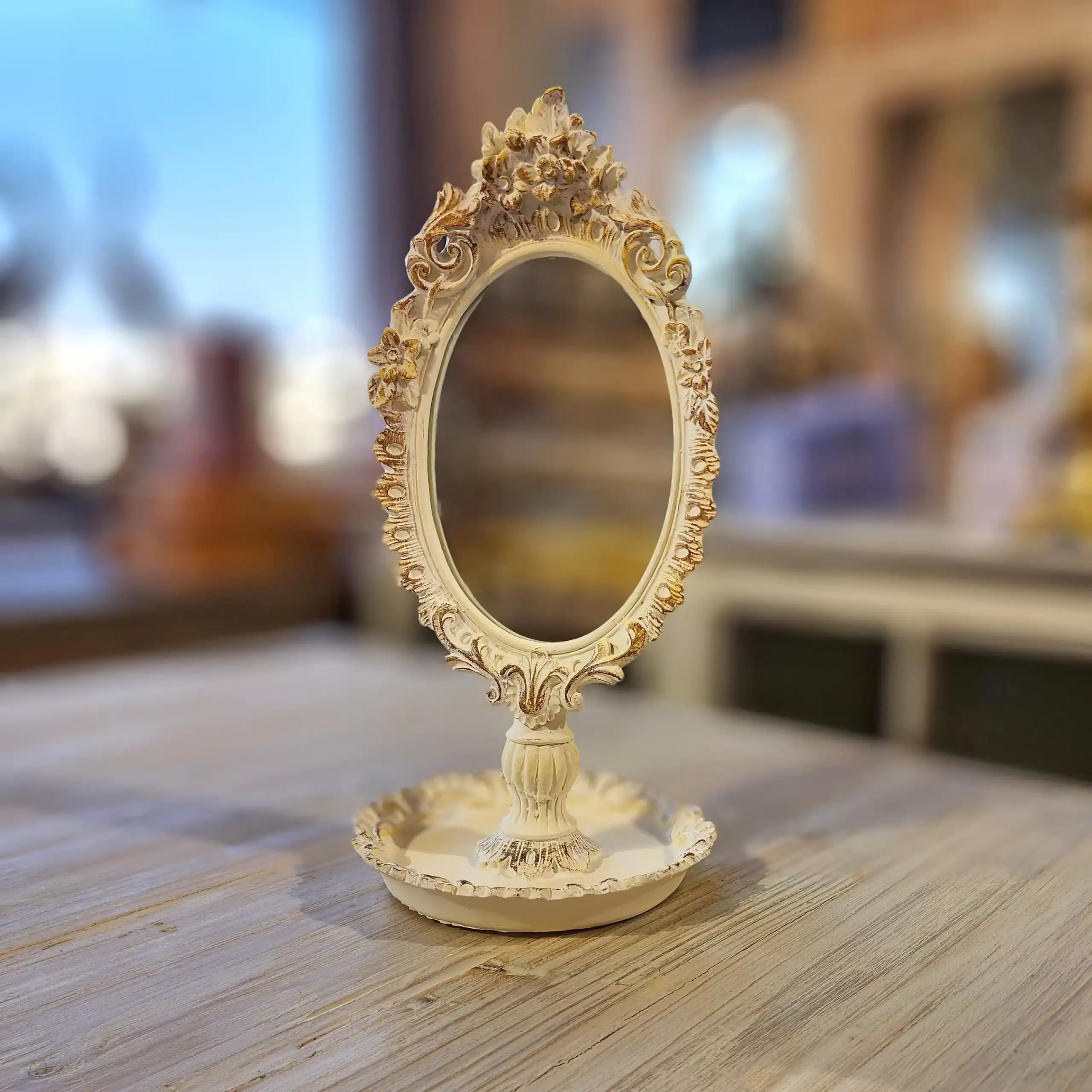 أضف لمسة ملكية وأناقة كلاسيكية إلى طاولتك مع هذه المرآة الفاخرة ذات الإطار الفكتوري المميز. تصميمها المتقن يعكس الذوق الرفيع ويجعلها قطعة مثالية لتزيين طاولات الزينة أو المداخل. تأتي بحجم كبير لتمنحك انعكاساً واضحاً وتضيف فخامة إلى أي ركن توضع فيه.