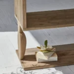 أضف إلى منزلك قطعة ديكور عملية وفنية في آنٍ واحد مع مكتبة كتب خشب مصنوعة من خشب الأوك الطبيعي بتصميم مبتكر. تتكون من وحدات خشبية مستقلة تفصلها أعمدة منحوتة بشكل جذّاب، مما يجعل كل رف يبدو كأنه منصة عرض قائمة بذاتها. سواء كنت تبحث عن طريقة أنيقة لعرض الكتب أو تحب تنسيق الديكورات، فإن هذه المكتبة توفر لك حلاً مثالياً يجمع بين صلابة الأوك وجمال النحت.