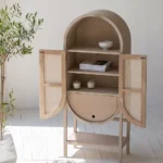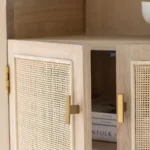 • خشب الأوك والراتان: تجمع بين خشب الأوك (Oak) المتين ذو العروق الجذابة، و شبك الراتان الطبيعي الذي يغطي الأبواب، لتخلق قطعة أثاث بوهيمية فاخرة تعكس أحدث صيحات الديكور العالمي.