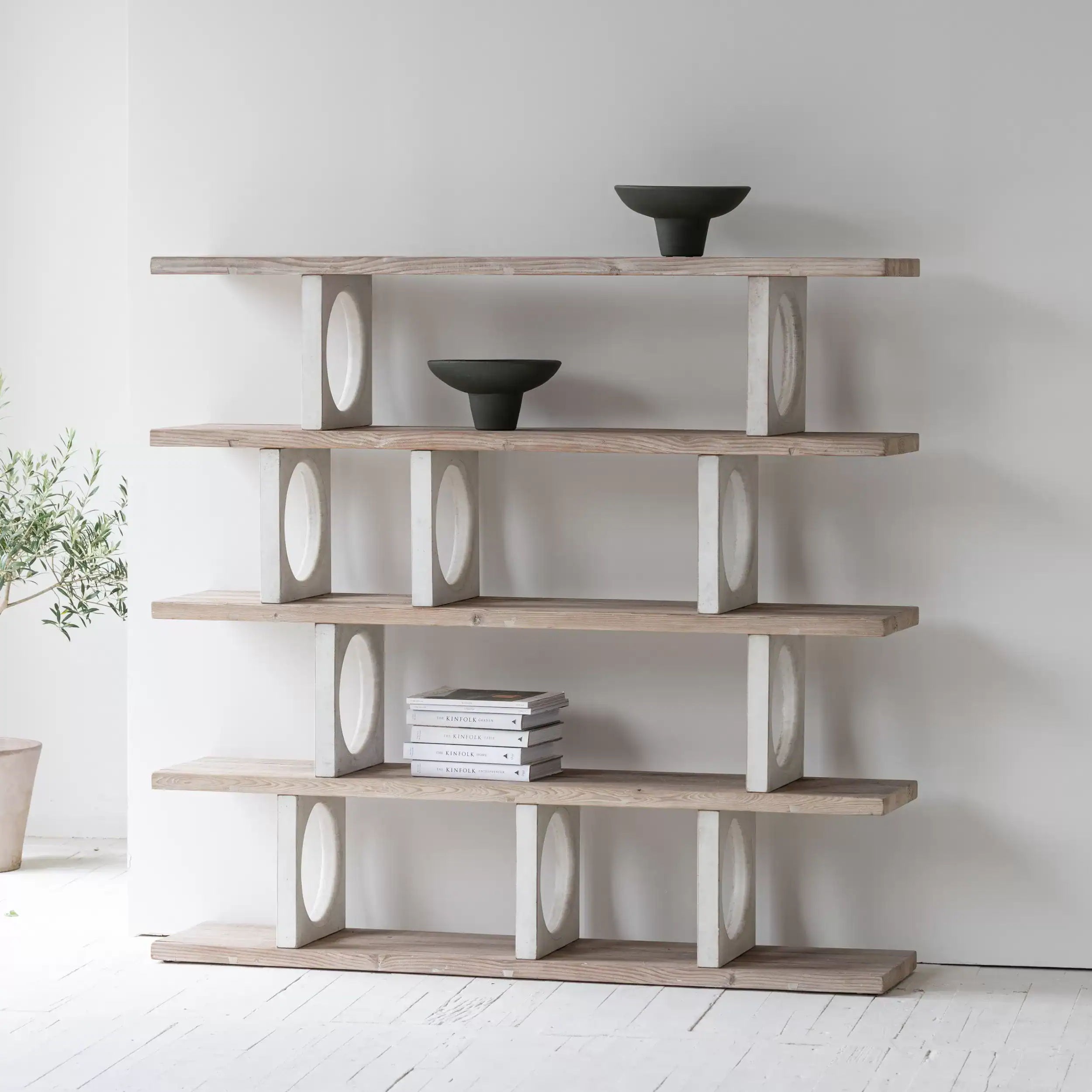 هل تبحث عن قطعة فنية تزين جدارك وتخدم احتياجات التخزين والعرض في الوقت نفسه؟ إليك مكتبة خشب صنوبر مصممة بأسلوب هندسي فريد يجمع بين القوة البصرية والتناسق الجمالي. تعتمد هذه المكتبة الجدارية على هيكل من الخشب الطبيعي مع فواصل وأعمدة دائرية تمنح التصميم طابعاً معمارياً حديثاً (Post-Modern Design) يعكس ذوقك الراقي والمختلف.