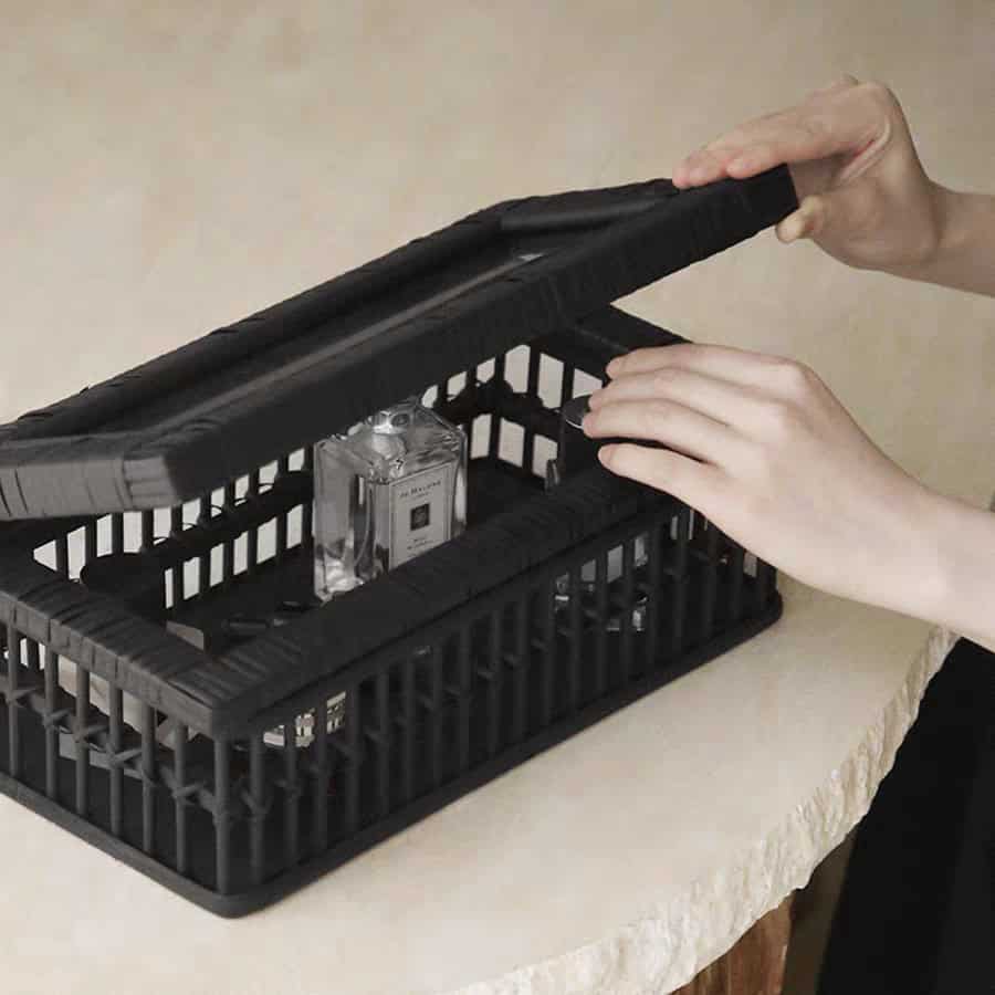 مساحة تخزين استثنائية: بفضل أبعاده الكبيرة (40 سم للكبير!)، هذا الصندوق يتسع لأكبر مجموعات العطور، ويمكنه استيعاب زجاجات العطور الطويلة والضخمة براحة تامة، أو حتى تخزين الإكسسوارات الكبيرة والنظارات الشمسية.