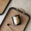 قاعدة راتان منسوجة: أرضية الصينية مصنوعة من شبكة الراتان القوية بلونها الطبيعي، مما يخلق تبايناً جذاباً مع الأسود ويمنع انزلاق الأغراض.