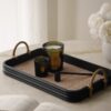 في العزائم والتجمعات، الراحة في التقديم لا تقل أهمية عن جمال القطعة. صينية الخشب والراتان المستطيلة صممت خصيصاً لتجمع بين الاثنين. المقابض العالية الملتفة بالخيزران الطبيعي تمنحك تحكماً كاملاً وثباتاً عند التنقل، بينما يضيف اللون الأسود لمسة عصرية لا تخطئها العين.