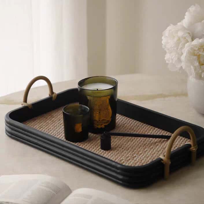 اجعلي ضيافتك أسهل وأكثر أناقة مع صينية الراتان المستطيلة من La Tulipe.
