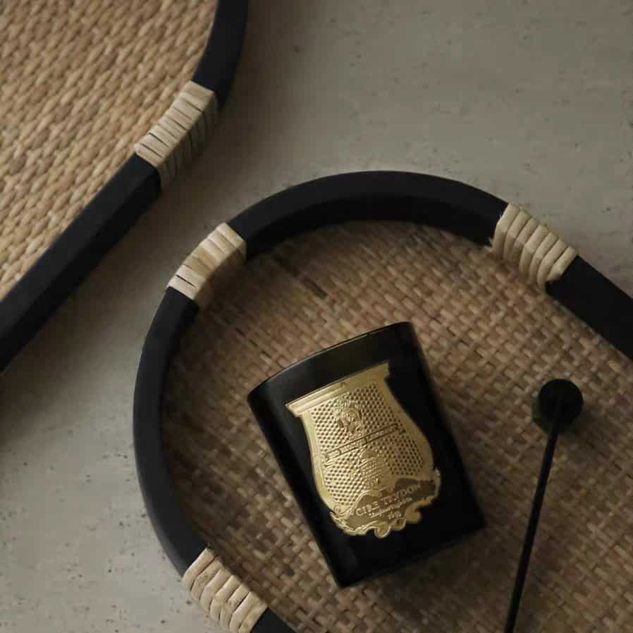 في الحمام أو التسريحة: ضعيها لتنظيم العطور ومستحضرات العناية. قاعدة الراتان تسمح بالتهوية وتمنع تجمع الرطوبة، بينما يضيف الإطار الأسود لمسة فندقية.