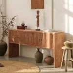 سطح عرض بطول 160 سم: السطح العلوي الطويل هو منصة مثالية لعرض مقتنياتك الثمينة. تخيل مرآة ذهبية كبيرة فوقه، مع شمعدانات كلاسيكية وفازة زهور ضخمة.. ستحصل على مدخل فندقي في منزلك.