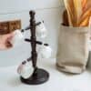 هل تعانين من ازدحام الطاولة بالأكواب؟ حامل الأكواب الخشبي العامودي هو الحل الذكي والأنيق. بدلاً من فرد الأكواب على الصينية وأخذ مساحة كبيرة، قومي بتعليقها عمودياً لتوفير المساحة ولخلق نقطة جذب بصرية رائعة في ركن القهوة أو على بوفيه الإفطار.