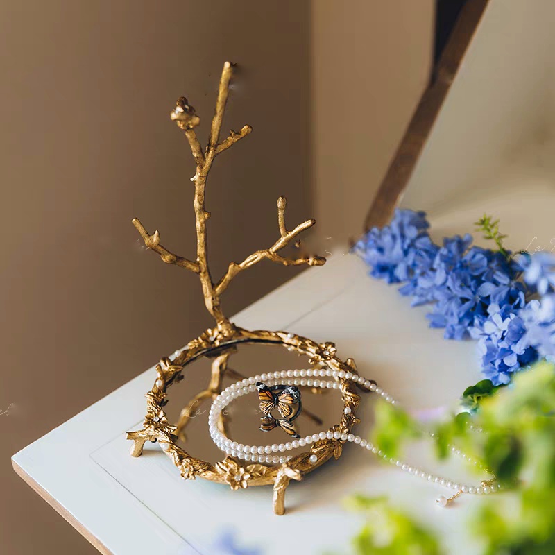 نظمي كنوزك الصغيرة بلمسة من الطبيعة والفخامة مع ستاند المجوهرات الذهبي من La Tulipe.