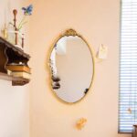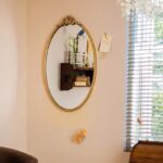 حمامات الضيوف: استخدميها كمرآة رئيسية فوق المغسلة في حمام الضيوف. الشكل البيضاوي واللون الذهبي سيمنحان الحمام طابعاً فندقياً فاخراً.